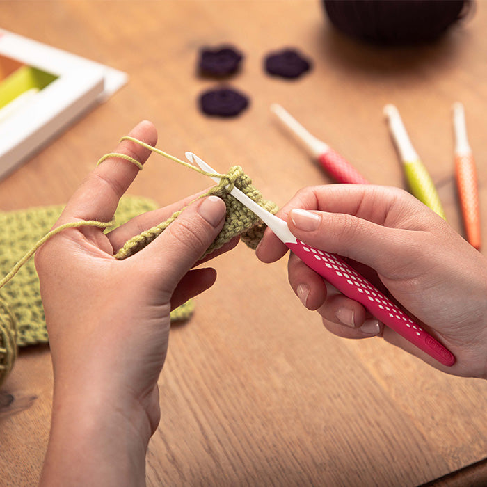 Prym Ergonomics Crochet Hooks are designed to modernize crocheting. The optimized hook catches yarn easily, while the comfortable handle shape helps you work with ease.